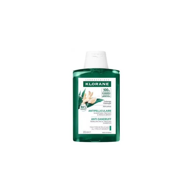 Champú reequilibrante a base de galanga para el tratamiento del cabello con caspa. La galanga es una planta del género alpinia que ha demostrado ser muy eficaz para reducir la descamación del cuero cabelludo y evitar la aparición de caspa ya que evita la proliferación de malasezzia, el hongo causante de la caspa capilar, además, tiene propiedades calmantes y ayuda a sanear el cuero cabelludo. Klorane champú reequilibrante galanga limpia el cabello y el cuero cabelludo eliminando la grasa y la caspa de todo tipo desde la primera aplicación. Regenera y nutre el folículo piloso, ayuda a reequilibrar el cuero cabelludo evitando la descamación y la aparición de caspa hasta 7 días. El resultado es un cabello limpio, suave y brillante.
