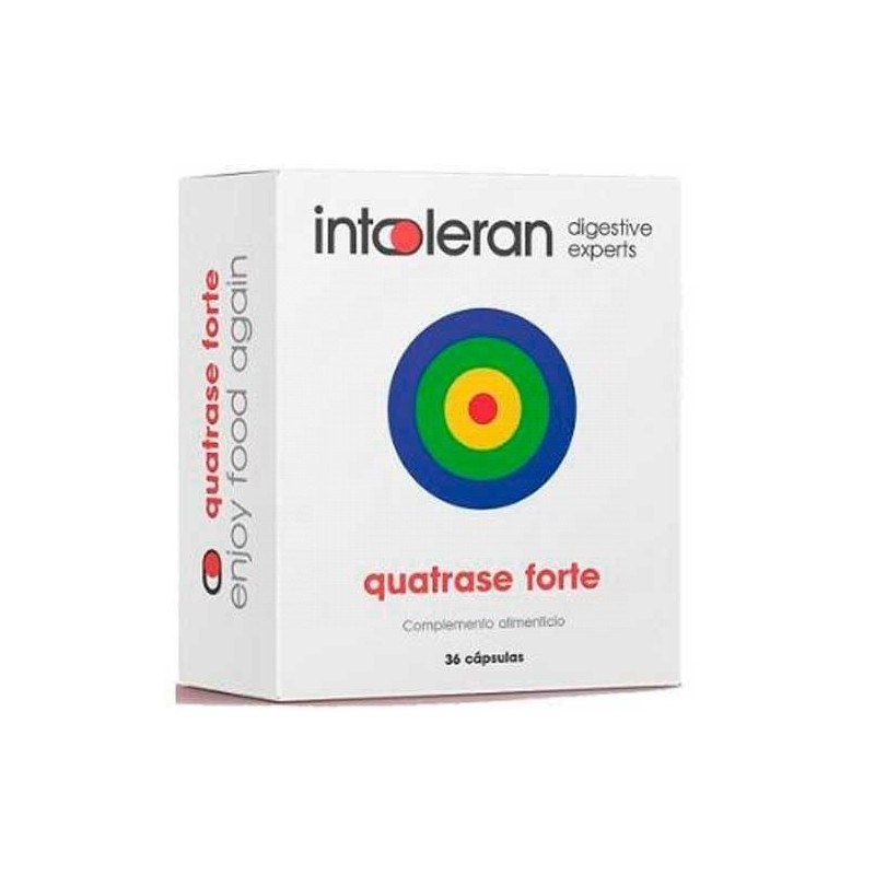 Descripción: Intoleran Quatrase Forte es un complemento alimenticio diseñado para ayudar en la digestión de ciertos alimentos. Su fórmula única a base de enzimas, como alfa-galactosidasa, xilosa isomerasa, lactasa e invertasa, proporciona un soporte eficaz para aquellos que experimentan molestias digestivas debido a la intolerancia alimentaria.