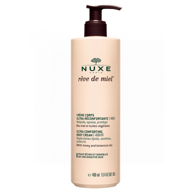 Esta crema corporal ultra-reconfortante nutritiva con Miel y Aceites vegetales, relipida, calma y protege de las agresiones externas (viento, frío...) las pieles secas y sensibles. Su textura aterciopelada penetra con rapidez sin producir un efecto graso y ofrece un confort de larga duración durante 48h*. Inmediatamente nutrida, la piel está más suave y flexible.