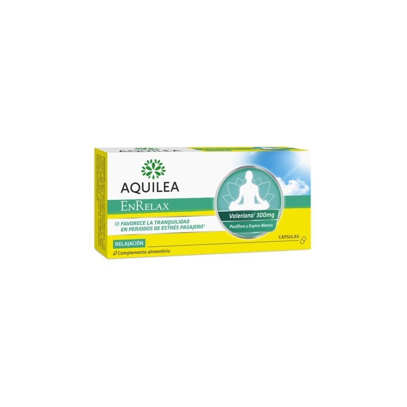 Aquilea Enrelax facilita la relajación, gracias a la combinación de sus ingredientes activos como valeriana, pasiflora y espino blanco.